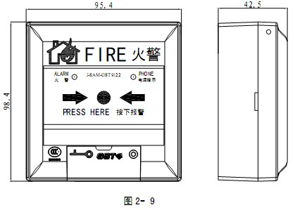 J-SAM-GST9122海湾消防手动报警器外形示意图如图2-9