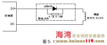 各区驱动钢瓶电磁阀有源输出的布线方式如图5-11所示。附加元件应置于线路的末端、接近于钢瓶电磁阀处。