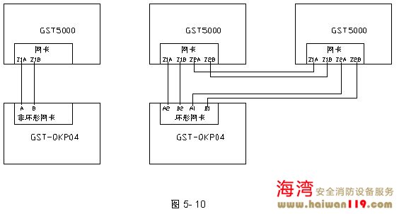 GST-QKP04/2海湾消防气体灭火控制器可通过本地网卡与火灾报警控制器(联动型)联网,接线示意图如图5-10所示。