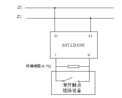 GST-LD-8300型输入模块用于接收消防联动设备输入的常开或常闭开关量信号,并将联动信息传回火灾报警控制器(联动型)。主要用于配接现场各种主动型设备如水流指示器、压力开关、位置开关、信号阀及能够送回开关信号的外部联动设备等。这些设备动作后,输出的动作信号可由模块通过信号二总线送入火灾报警控制器,产生报警,并可通过火灾报警控制器来联动其它相关设备动作。输入端具有检线功能,可现场设为常闭检线、常开检线输入,应与无源触点连接。