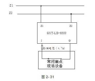 b.模块与具有常闭无源触点的现场设备连接方法如图2-31所示,模块输入设定参数设为常闭检线。
