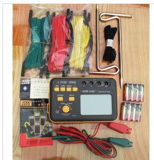 辅助接地棒2支,测试线1套(红色测试线15米/条,黄色测试线10米/条,绿色测试线5米每条),简易测试线1套(红色测试线1.6米/条,绿色测试线1.6米/条),1.5V