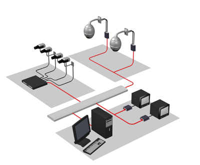 2)键盘通过RS485/RS422总线可直接控制,或者通过协议转换设备控制不同品牌不同协议的智能球机和硬盘录像机,这些球机和硬盘录像机的波特率在同一个CCTV系统中均可在2400bit/s-19200bit/s范围内单任意设置;