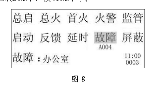 3) 液晶屏上的故障信息按发生的时间顺序循环显示各条外部设备故障信息,显示的内容:包括故障发生的地址、类型、时间、故障信息的总数。