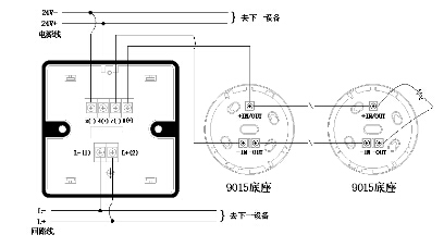 3、 4号端子接电源总线(注 意极性), 7、8号端接探测器信号线。使用时注意在信号线*末端的探测器底座上接3.9K终端电 阻以监视断线故障。